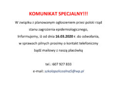 Dzisiaj tj. 18.09.2020 r. o godz. 15:30 rozpocznie się pierwszy zjazd dla kierunków zaocznych: technik administracji, technik usług kosmetycznych oraz opiekun medyczny. Zapraszamy wszystkich zapisanych i tych, którzy się jeszcze...