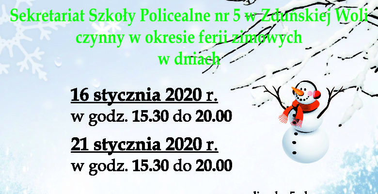 FERIE ZIMOWE – godz. pracy